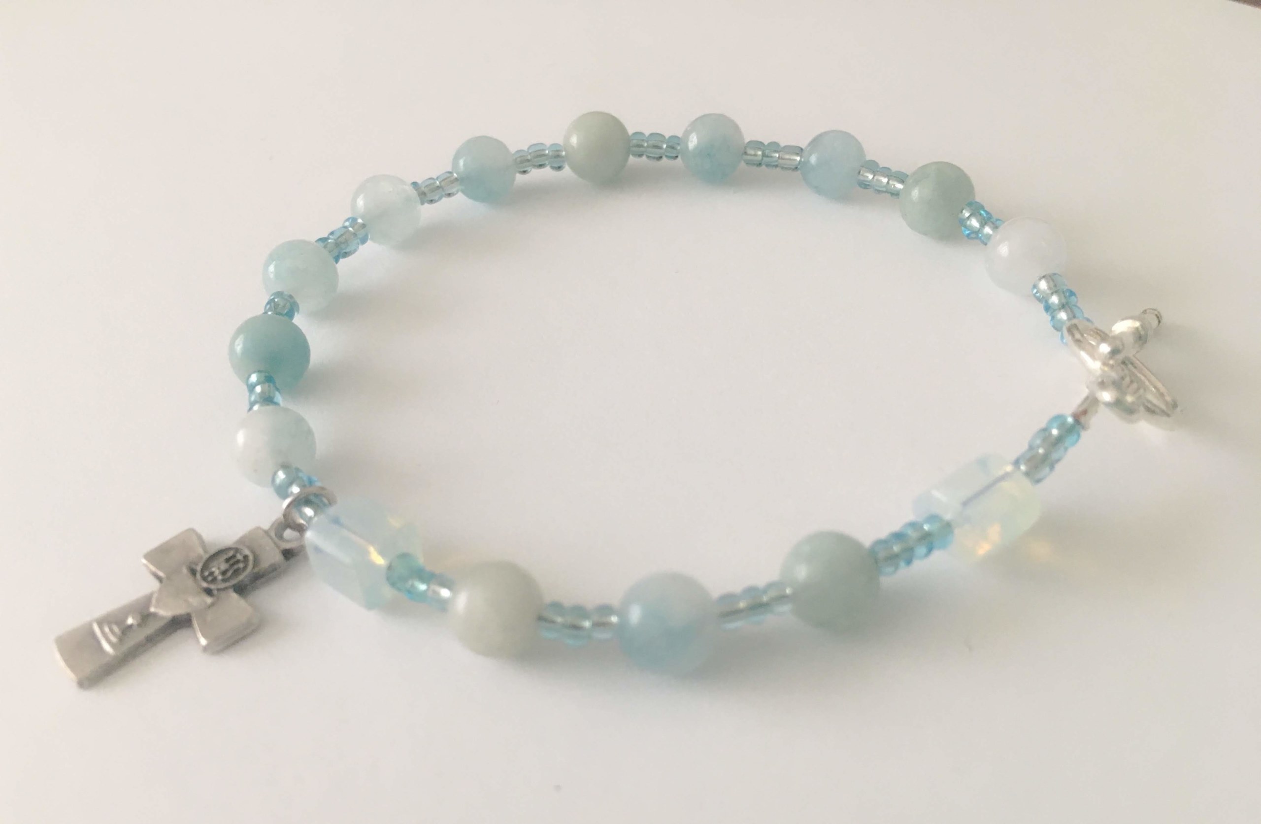 OPAL STONE First Holy Communion Decade Rosary Bracelet – MADE TO ORDER