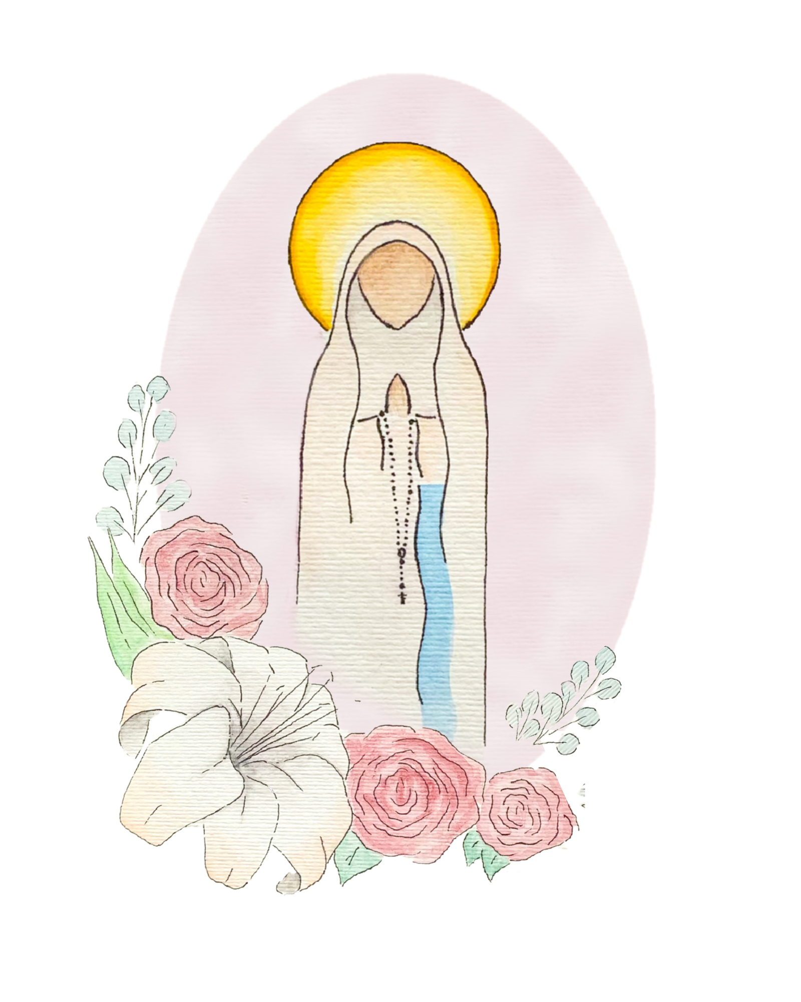 Enjoy this watercolor Our Lady of Lourdes as she prays her healing rosary over you and your home.