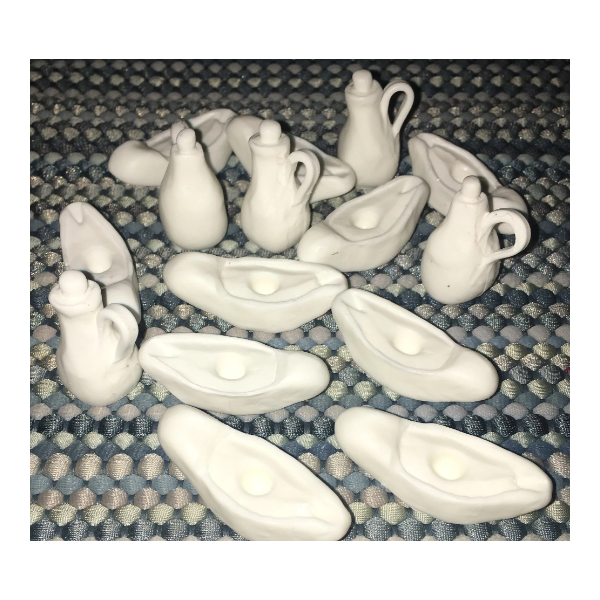 Clay Lamps (10) and oil flasks (5) – clay-like resin