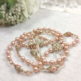 Peach Floral Rosary with Austrian Crystal Pearls, Polished Brass Religious Medals and Components