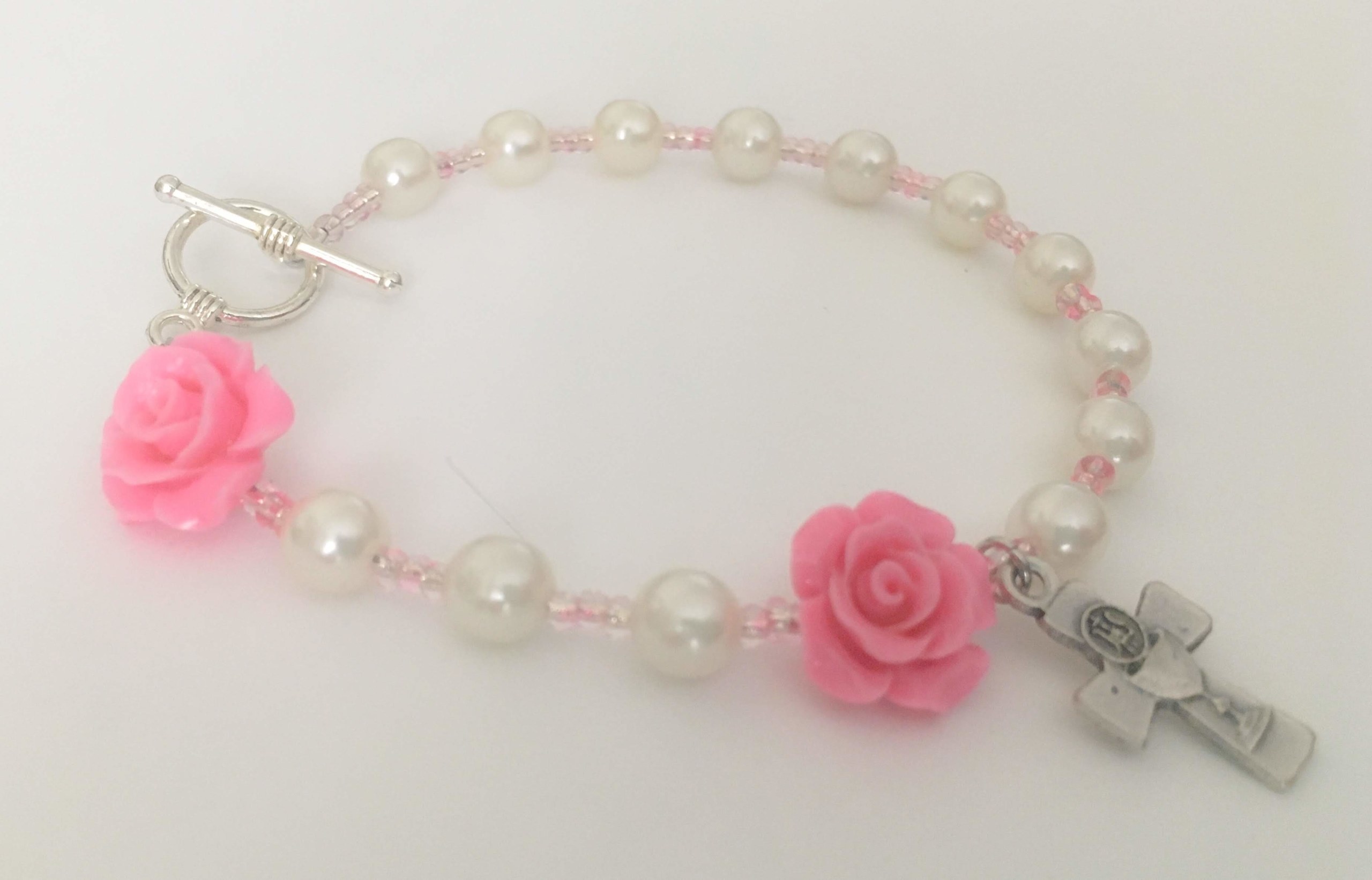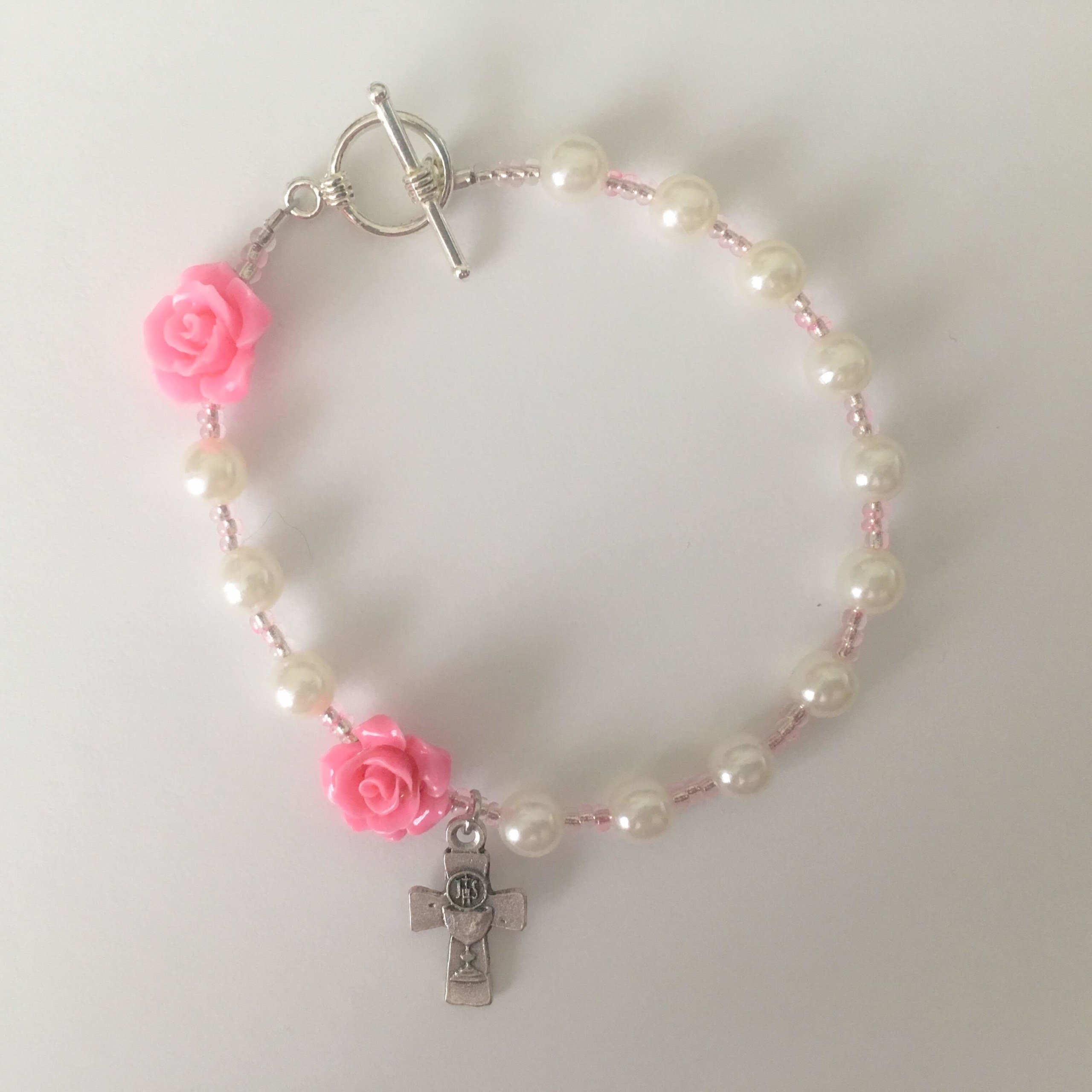 PEARLS & ROSES First Holy Communion Decade Rosary Bracelet – MADE TO ORDER