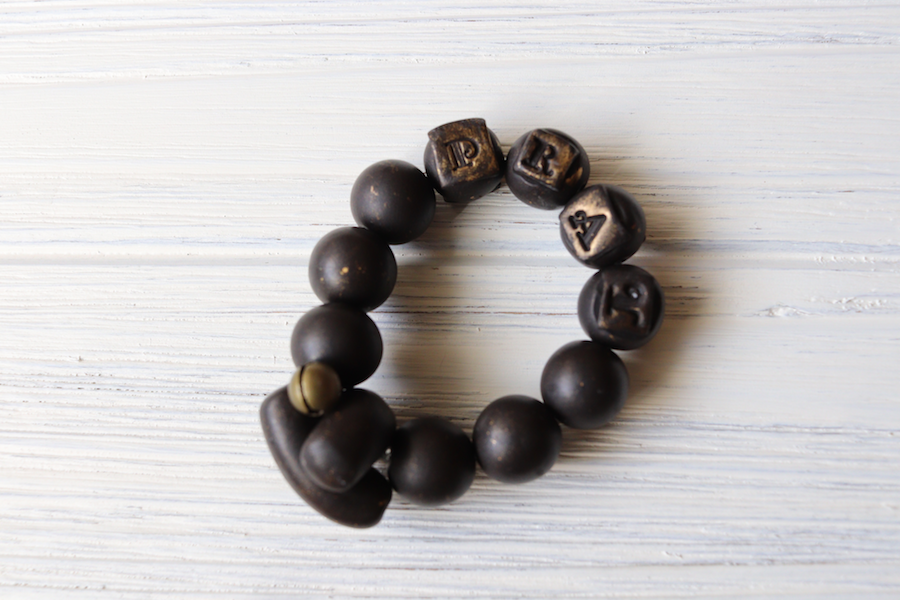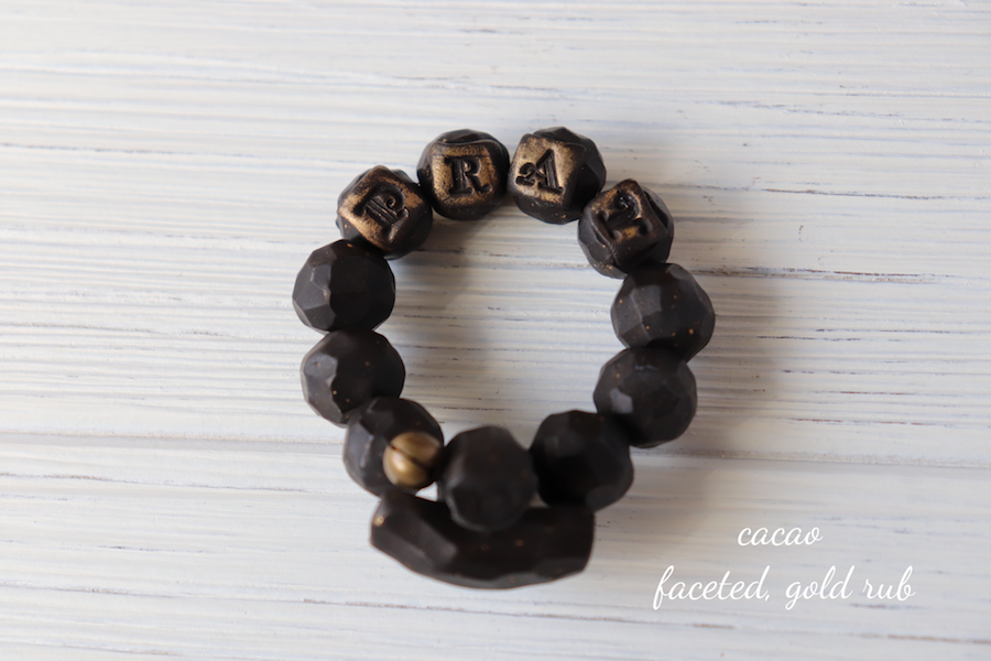 “PRAY” Travel | Pocket | Tenner | Decade Rosary Stretch Ring – Cacao Polymer Clay Creation