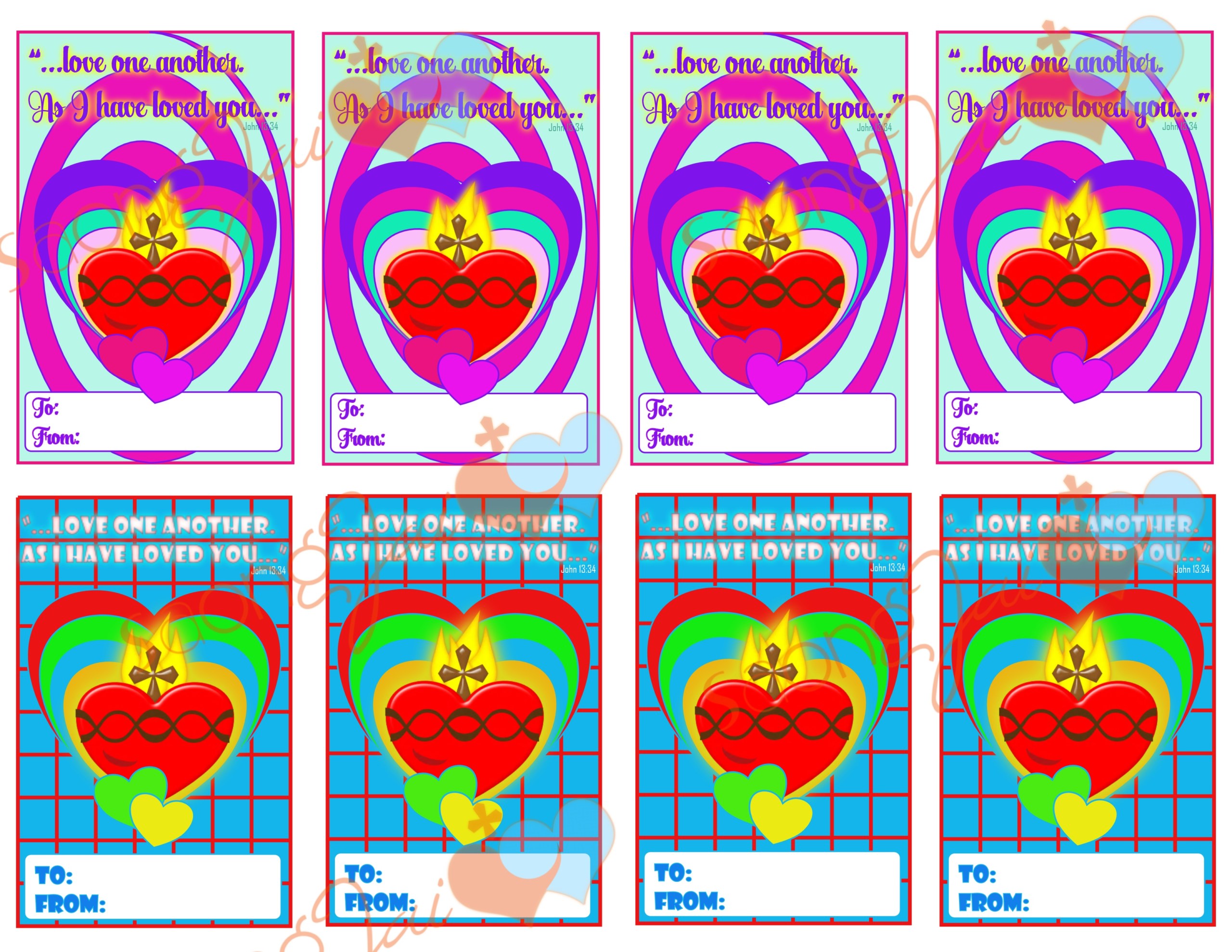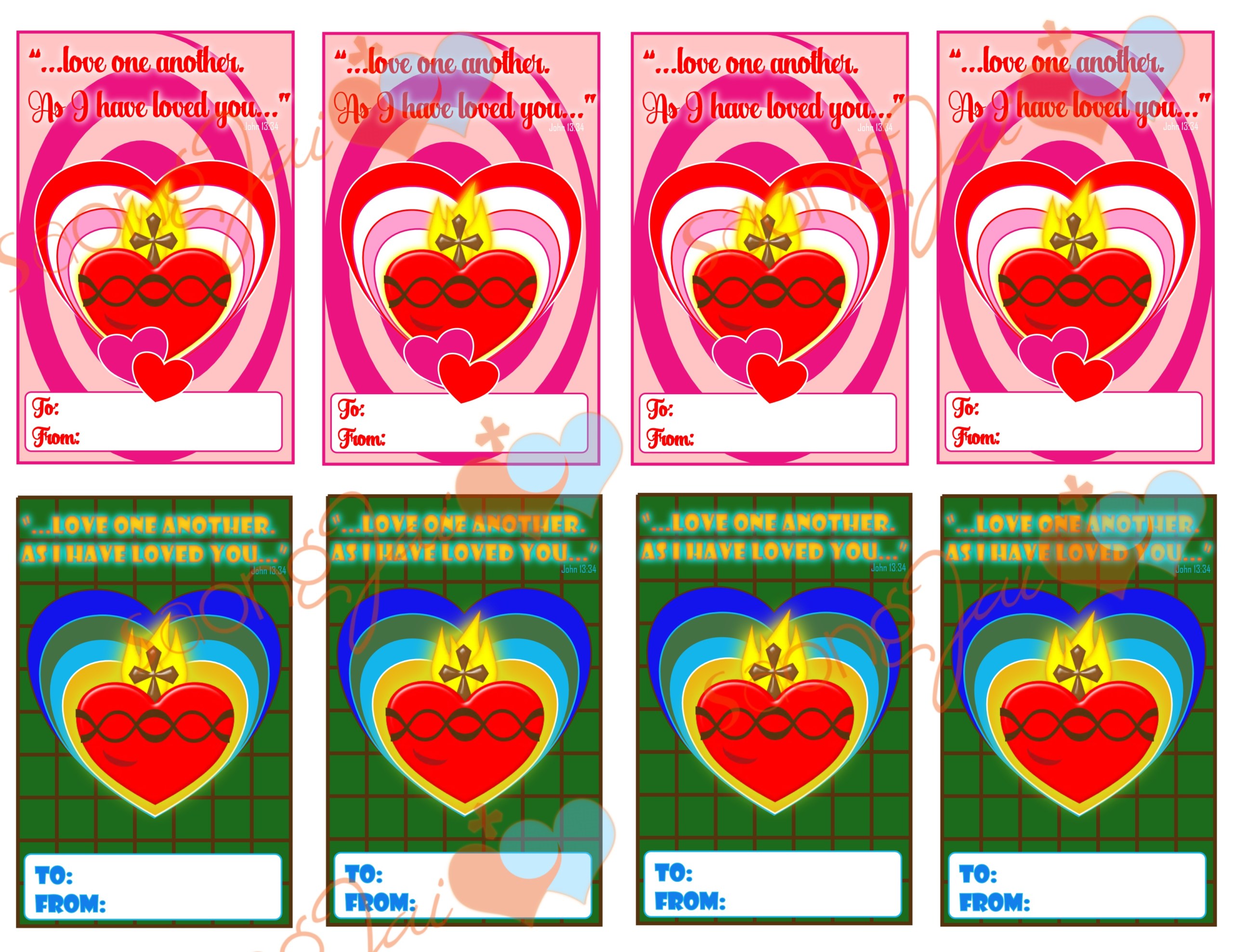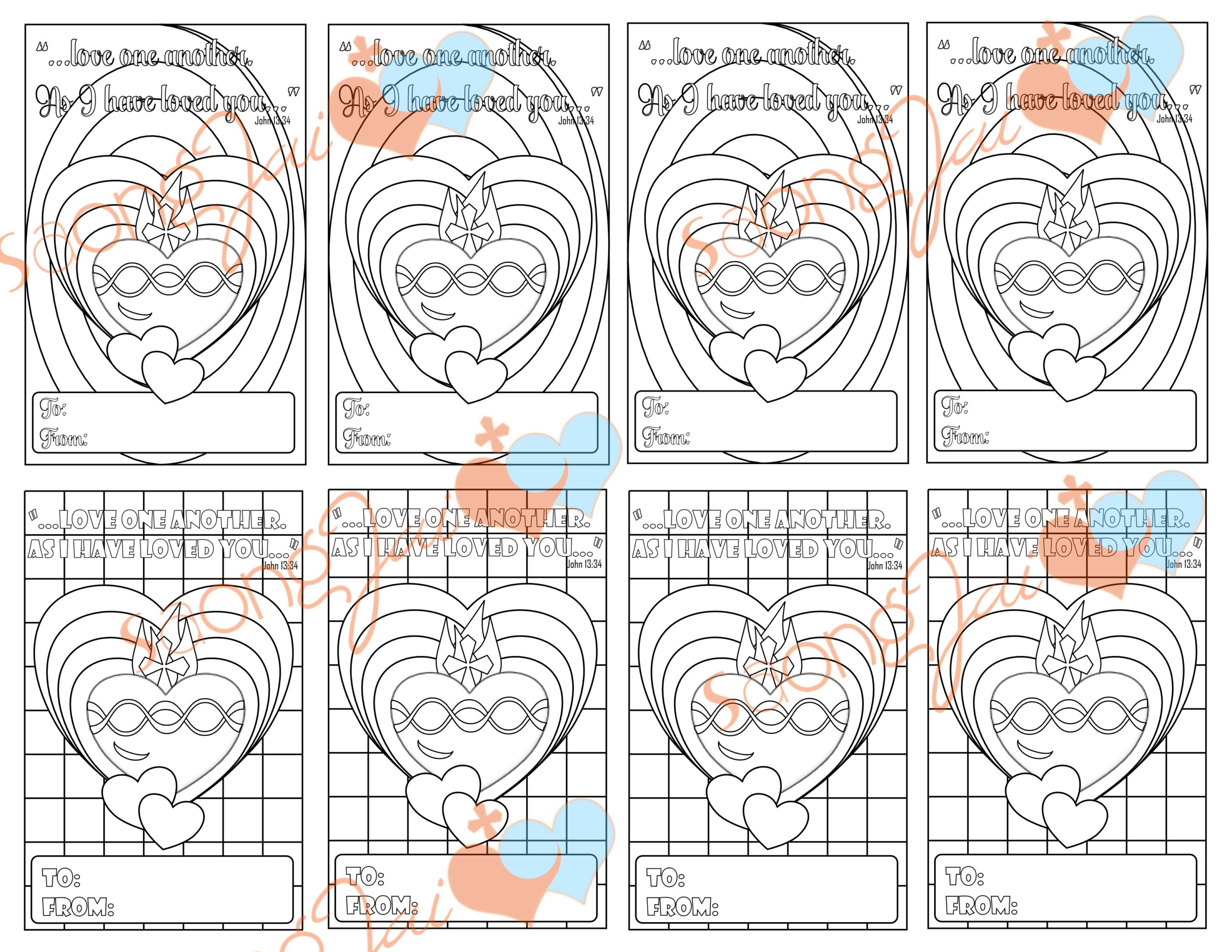 Cute printable Sacred Heart Valentine cards with scripture and Sacred Heart. 3 pages all together: two sets of printable colored pages and one coloring page set. The perfect instant download if you are looking for a ready made set to print out quickly or if you are looking for a craft for the kiddos you can print out the black and white set for them to color in!