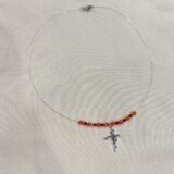 Handmade 20 inch wire necklace. Made with biocone red beads and deep reds in between.