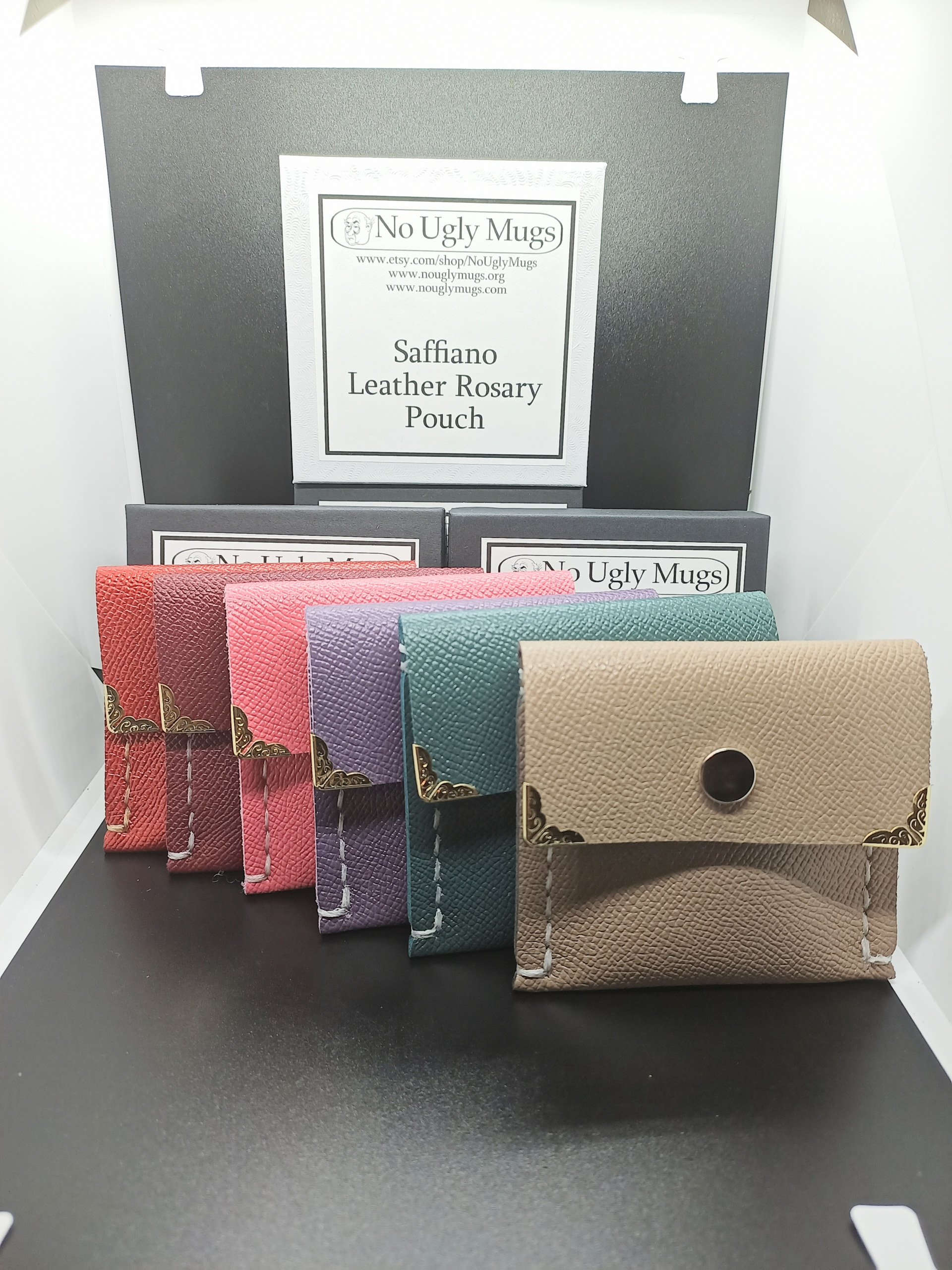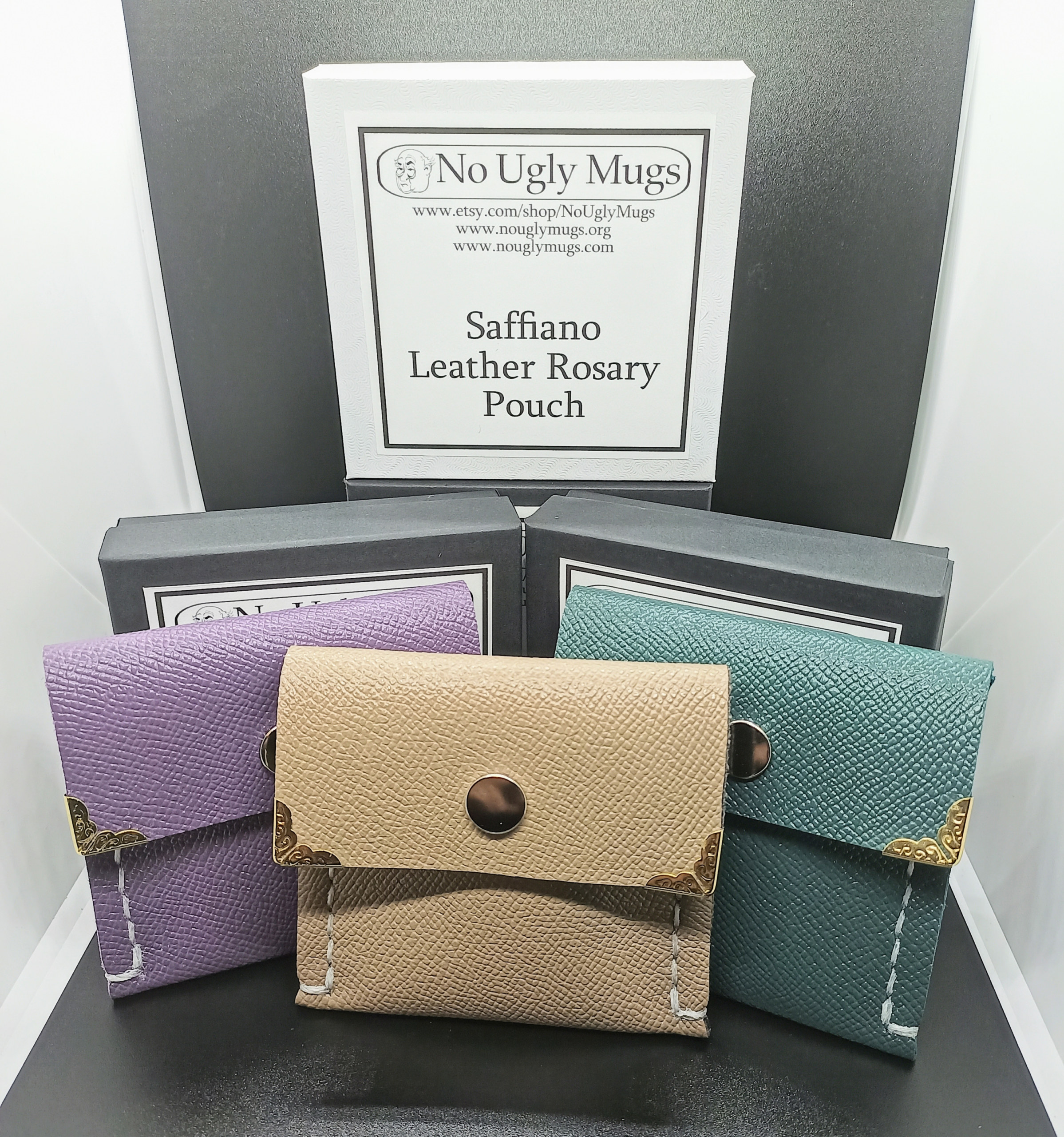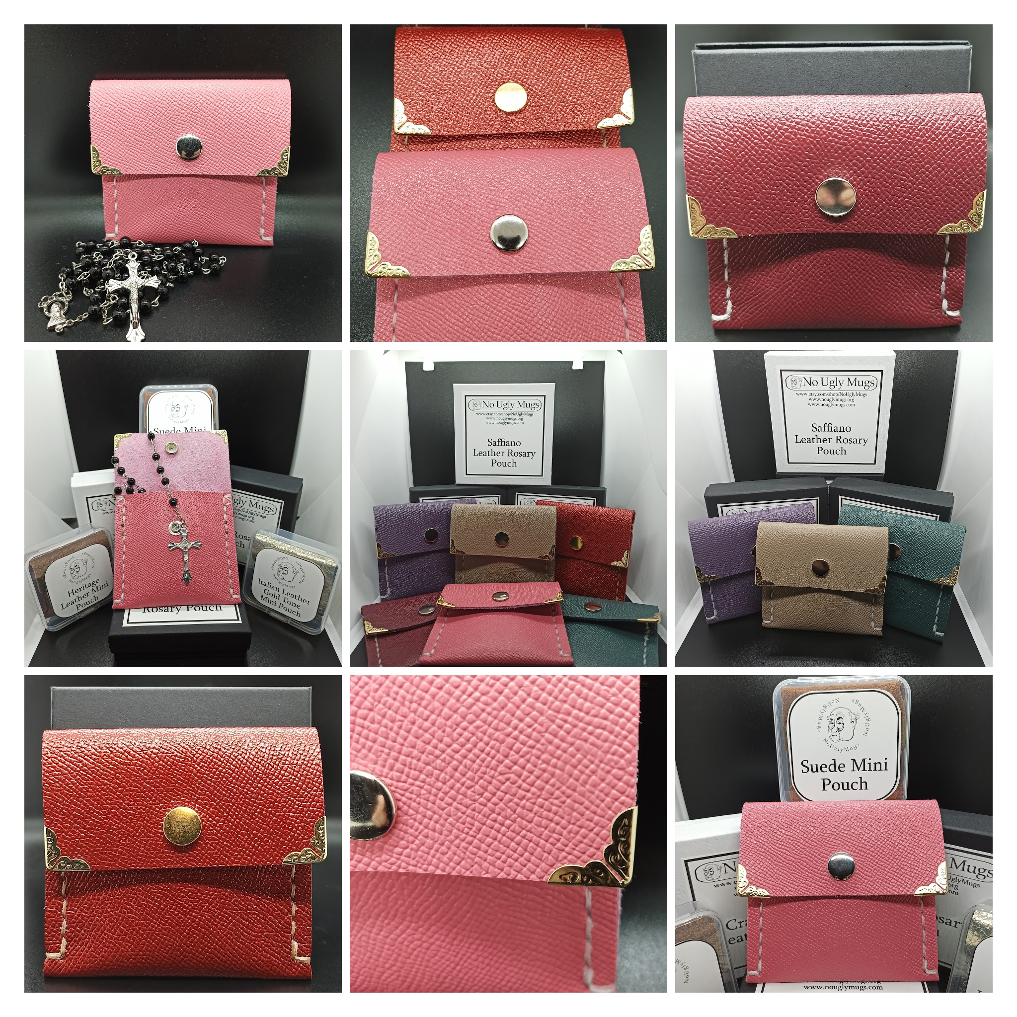 Saffiano Leather Crosshatch patterned rosary pouch.