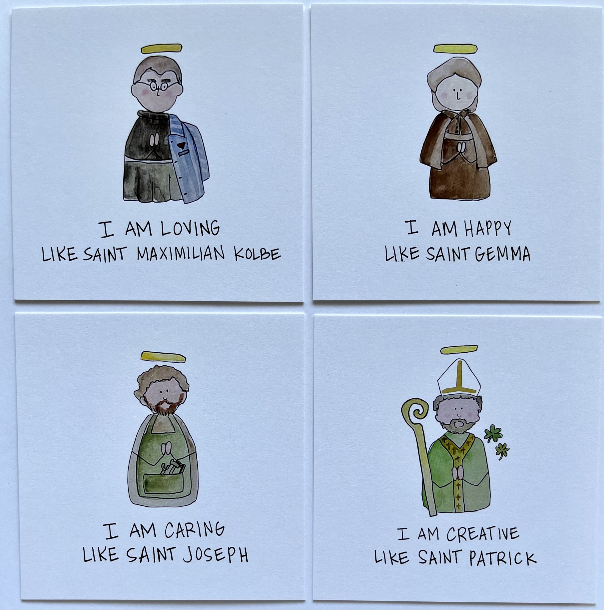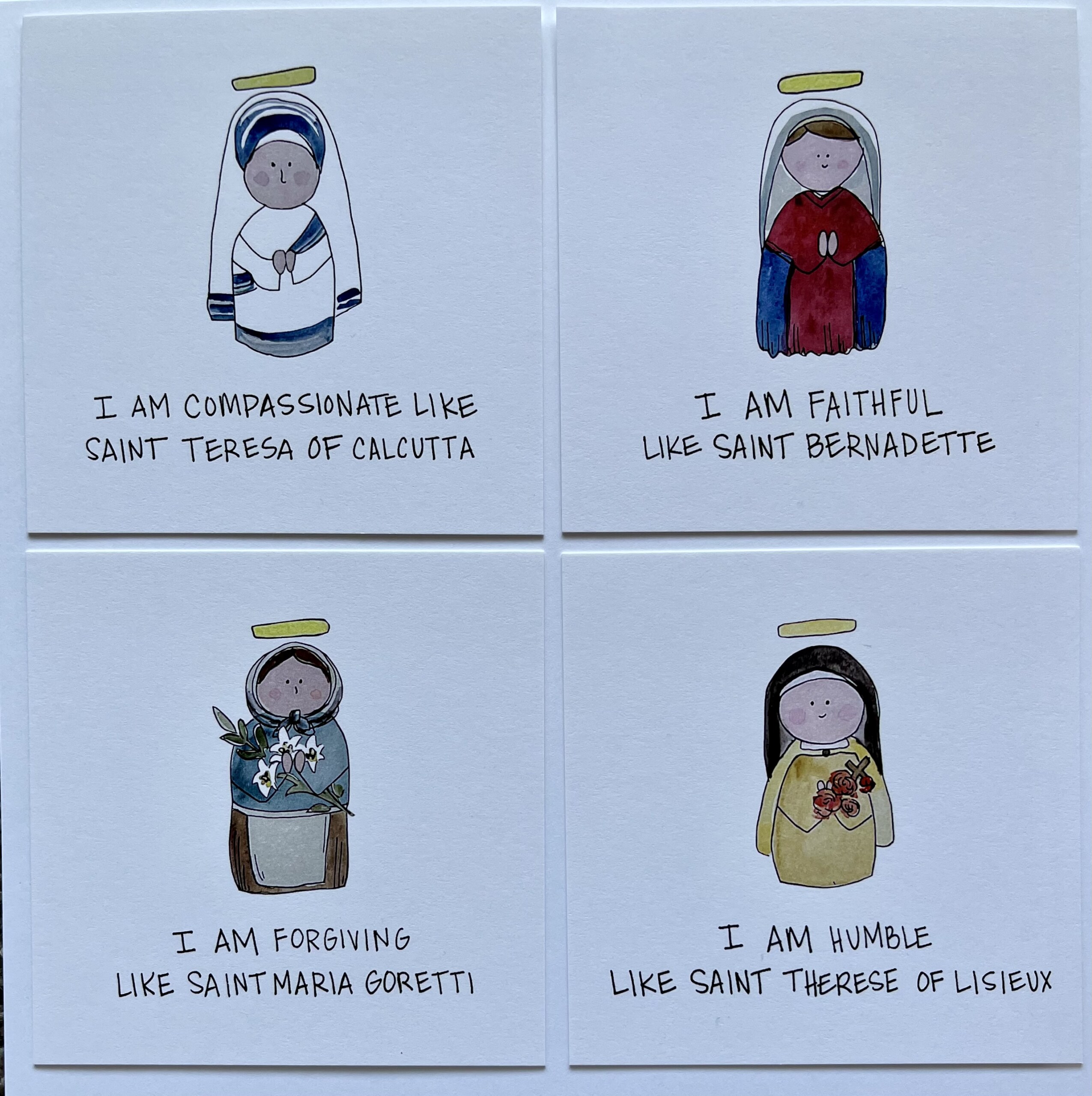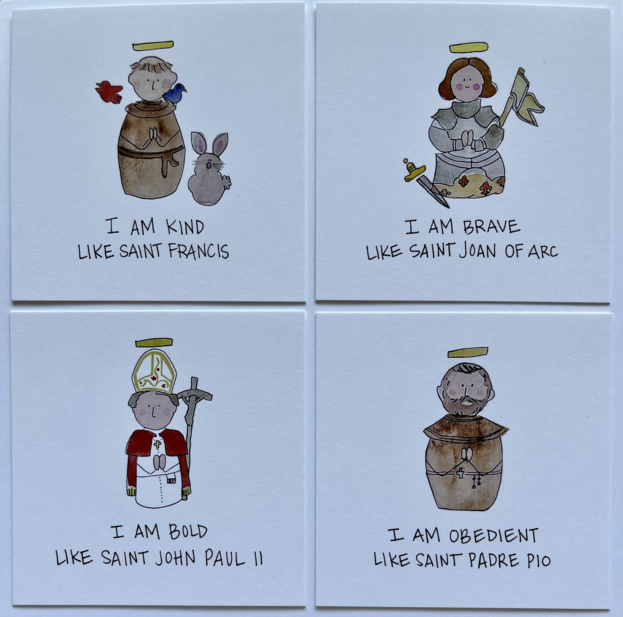 These affirmations are a great way to teach your child to “love thy neighbor” while also boosting his or her self-esteem. Each saint is a role model to us all and a gentle reminder that we too can be like the saints!
