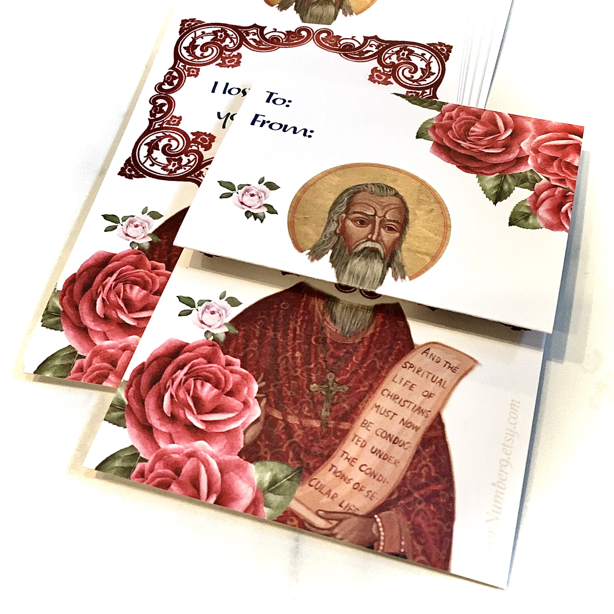 This sainted Valentine is printed on smooth, heavy cardstock, uncoated for easy writing.