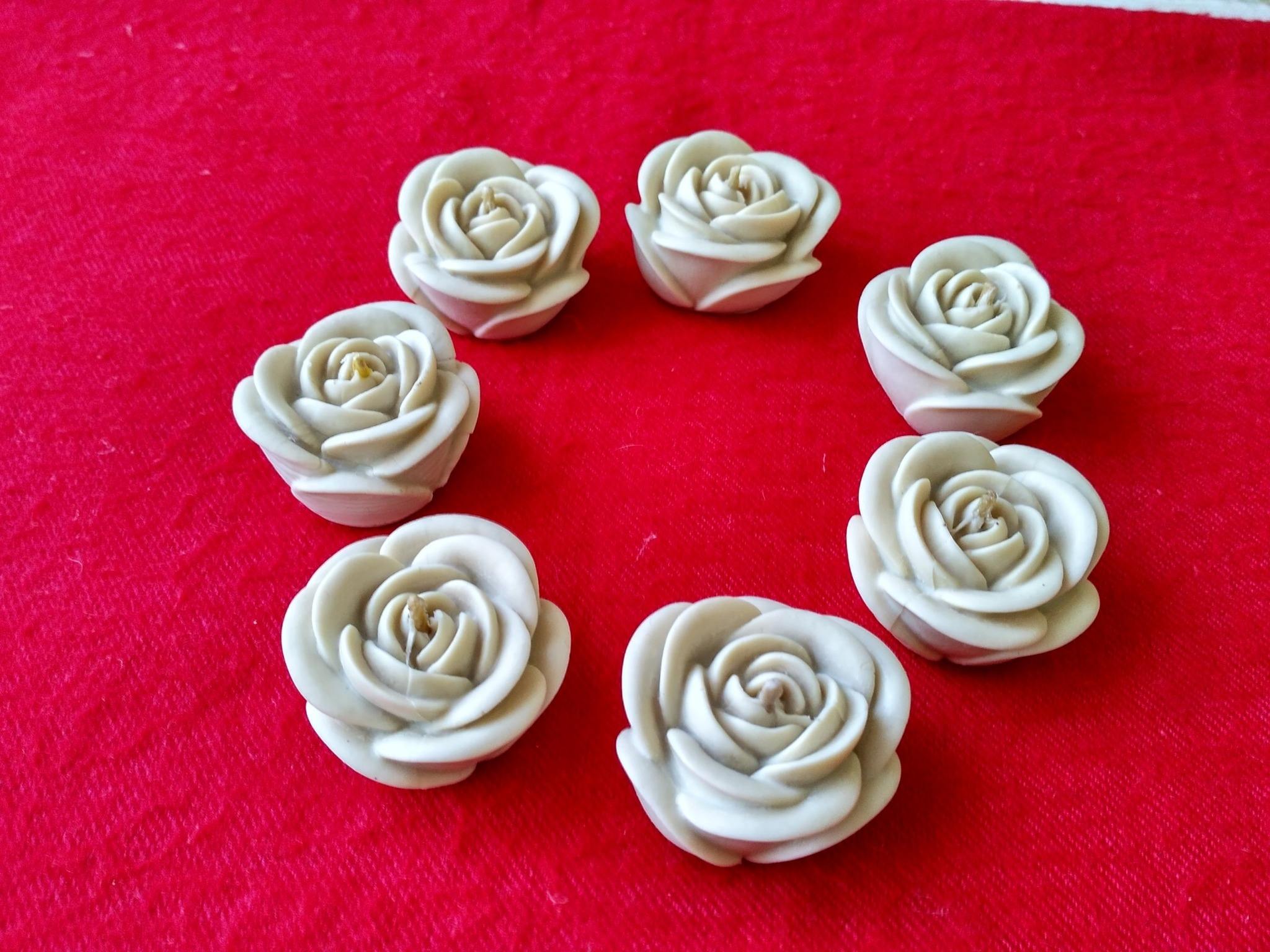 Each beeswax favor candle rose weighs 45g=1.6oz, dimensions are 6cm=2.3″ in width and 3.5cm=1.4″ in height.