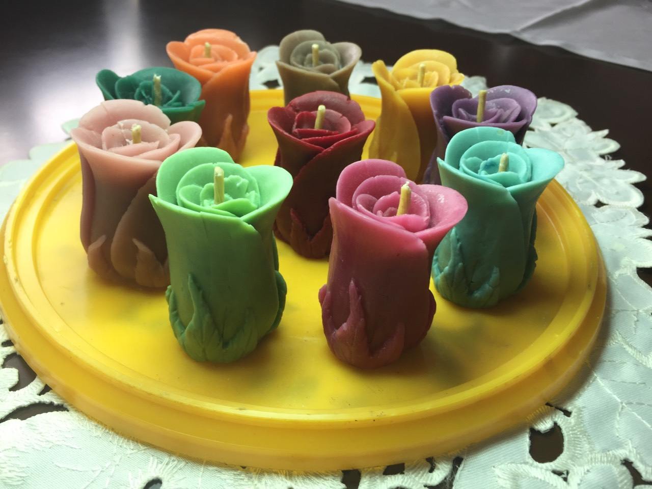 Set consists of 10 beautiful pure beeswax candles roses colored with different colors.