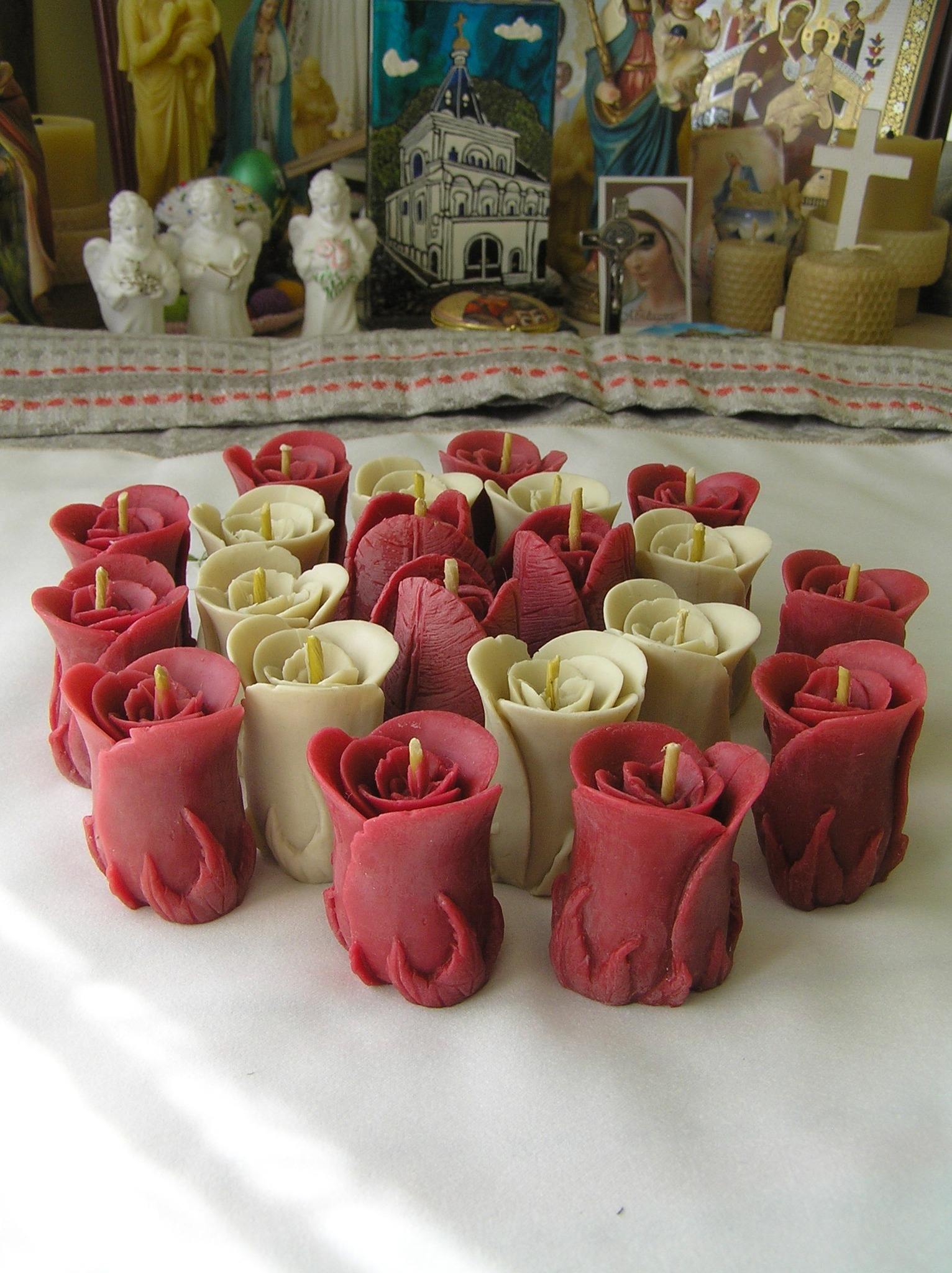 Set consists of 21 beautiful pure beeswax candles roses colored with 3 different colors(red,biege,pink). (You will recieve the same colors as it is shown on photo)