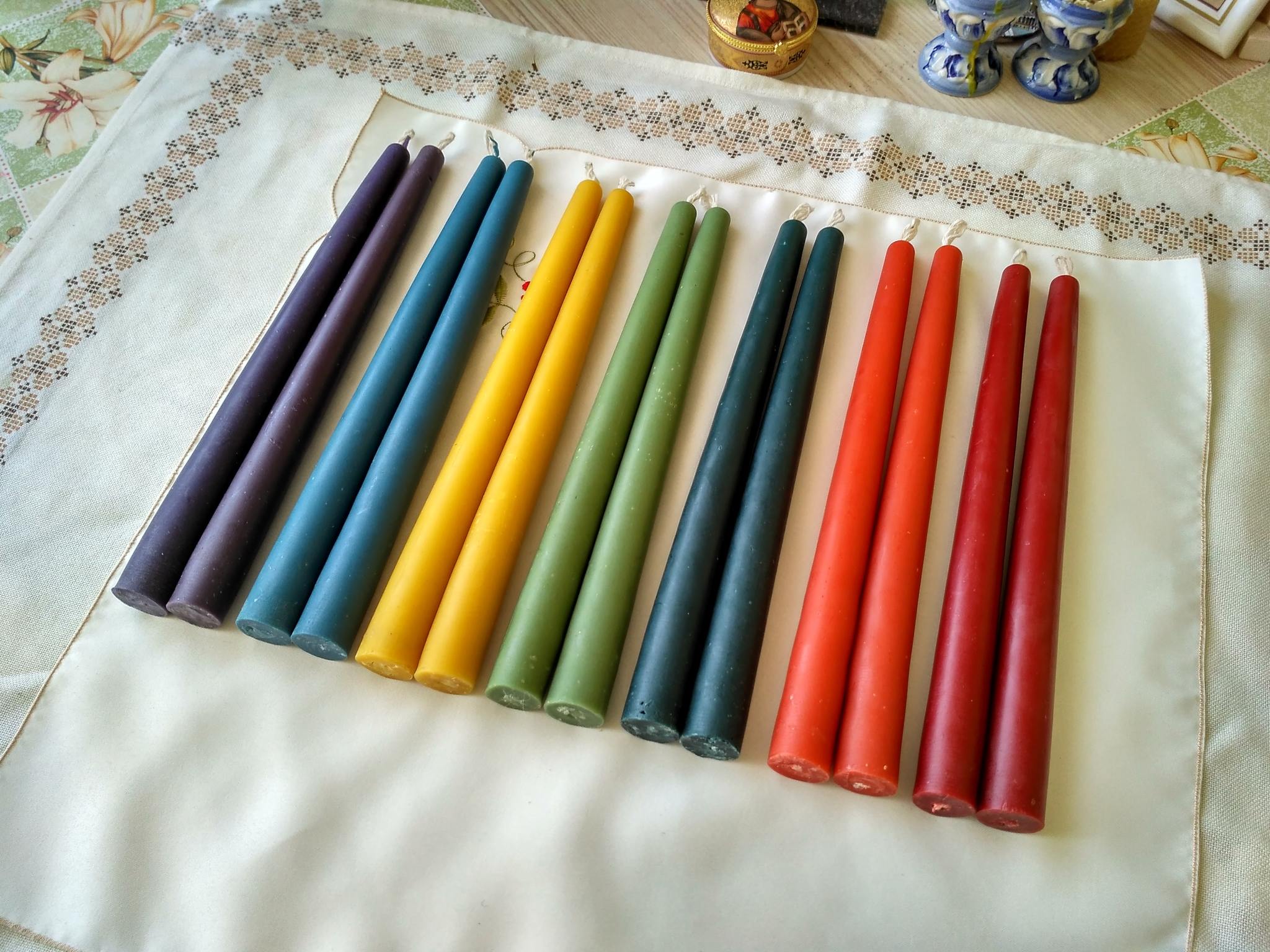 All candles are made from 100% pure beeswax + non toxic dyes.