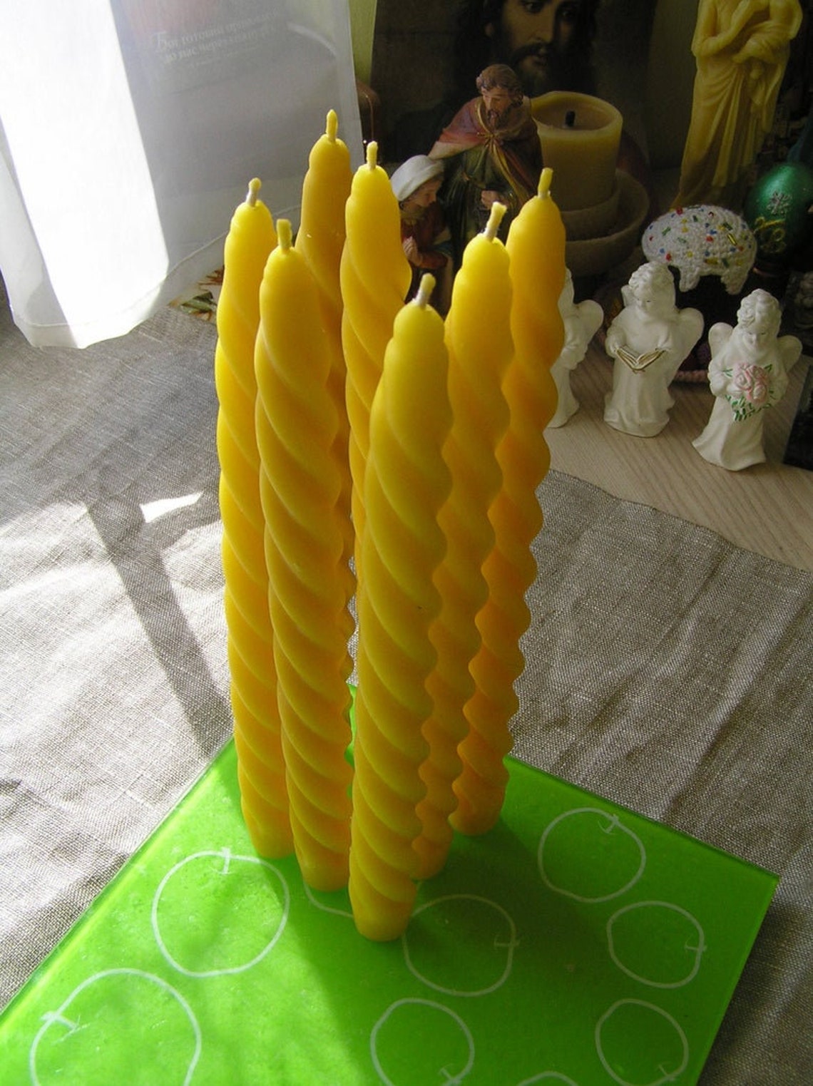 Set № 244 (up to 35oz=up to 1kg)= 8 taper beeswax candles$80.00