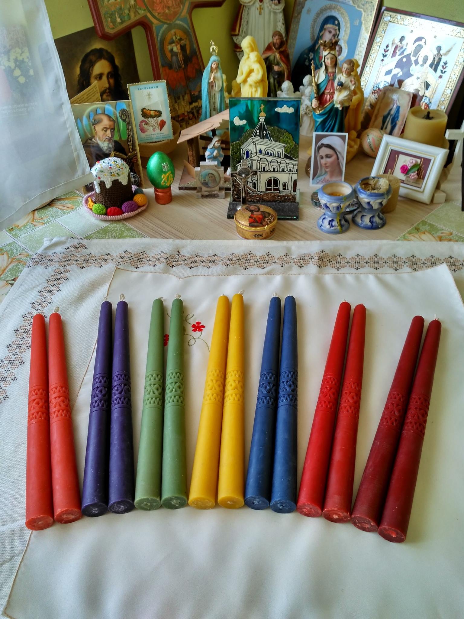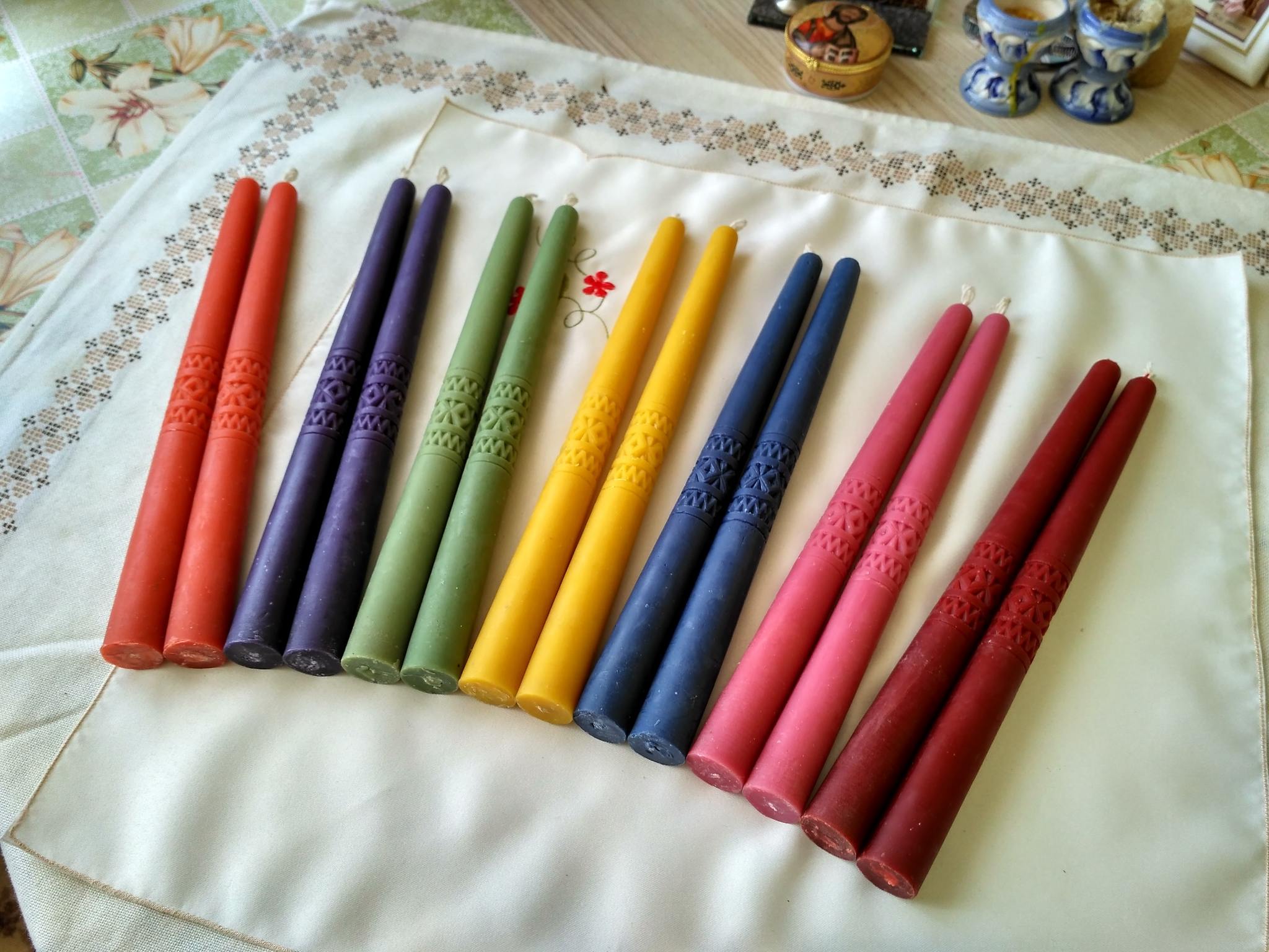 Great set of beautiful long burning 100% beeswax candles for very reasonable price.These candles may be nice gifts for different occasions like Easter,Christmas,Candlemas,prayer,emergencies.