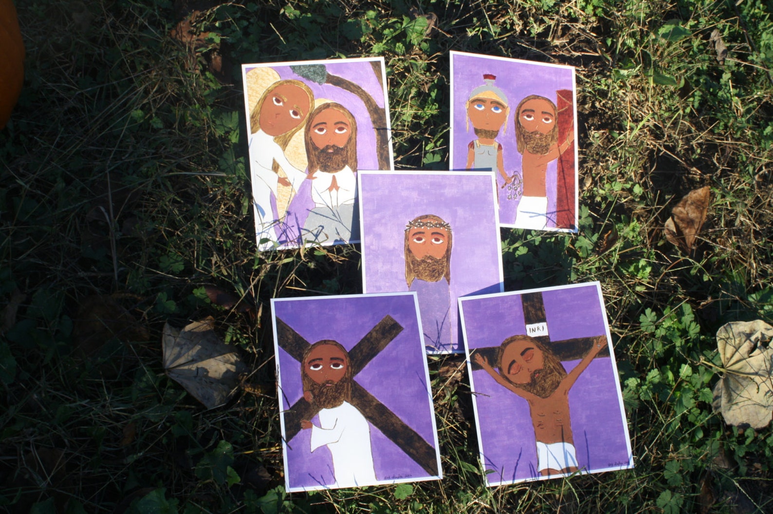 This is my entire set of the mysteries of the Rosary icons printed (by a local printer that does fabulous work!) on card stock. They came out so pretty and will inspire much thought during rosary prayers.