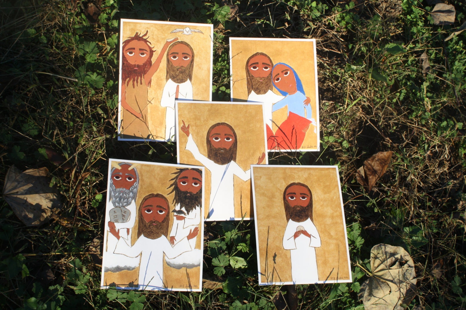 They can be propped up, held, framed or hang them along the wall with yarn and clothespins. Great for family prayers, teaching aids or just for something nice to look at.