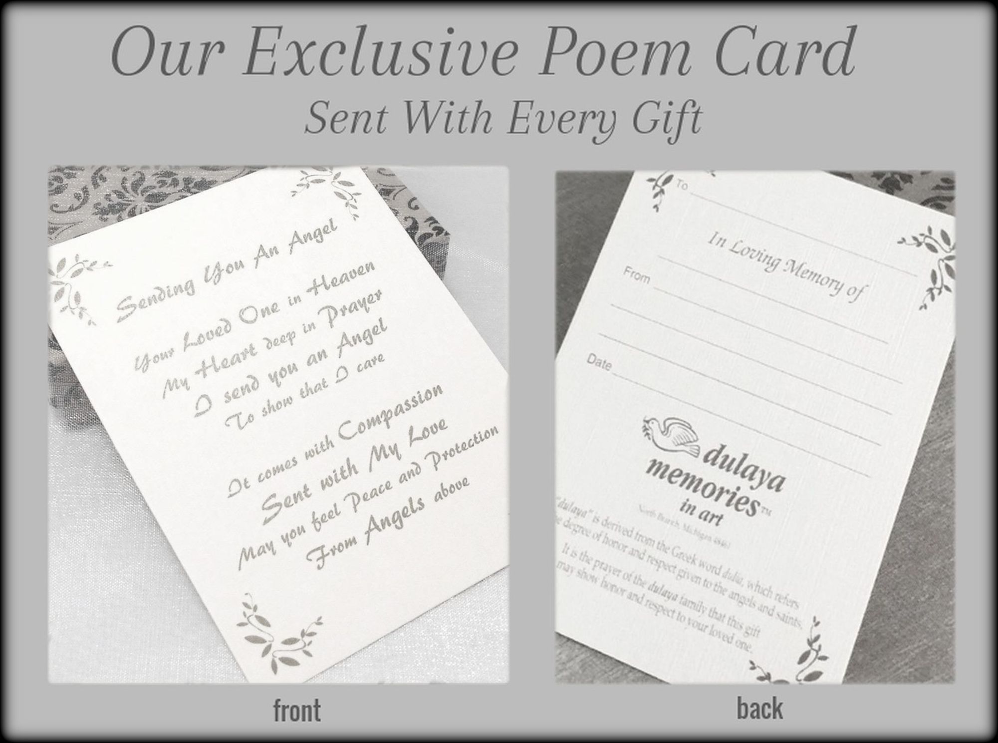 Our exclusive “Sending You An Angel” poem card is included along with a dedication card on the back side (see image).