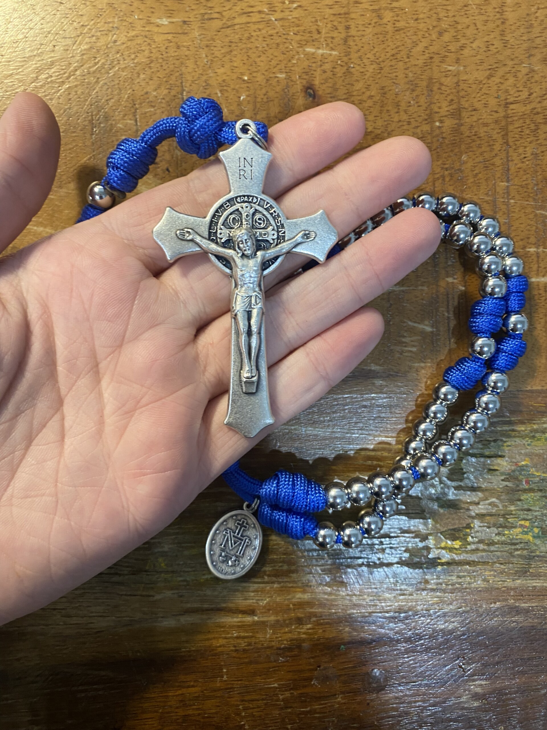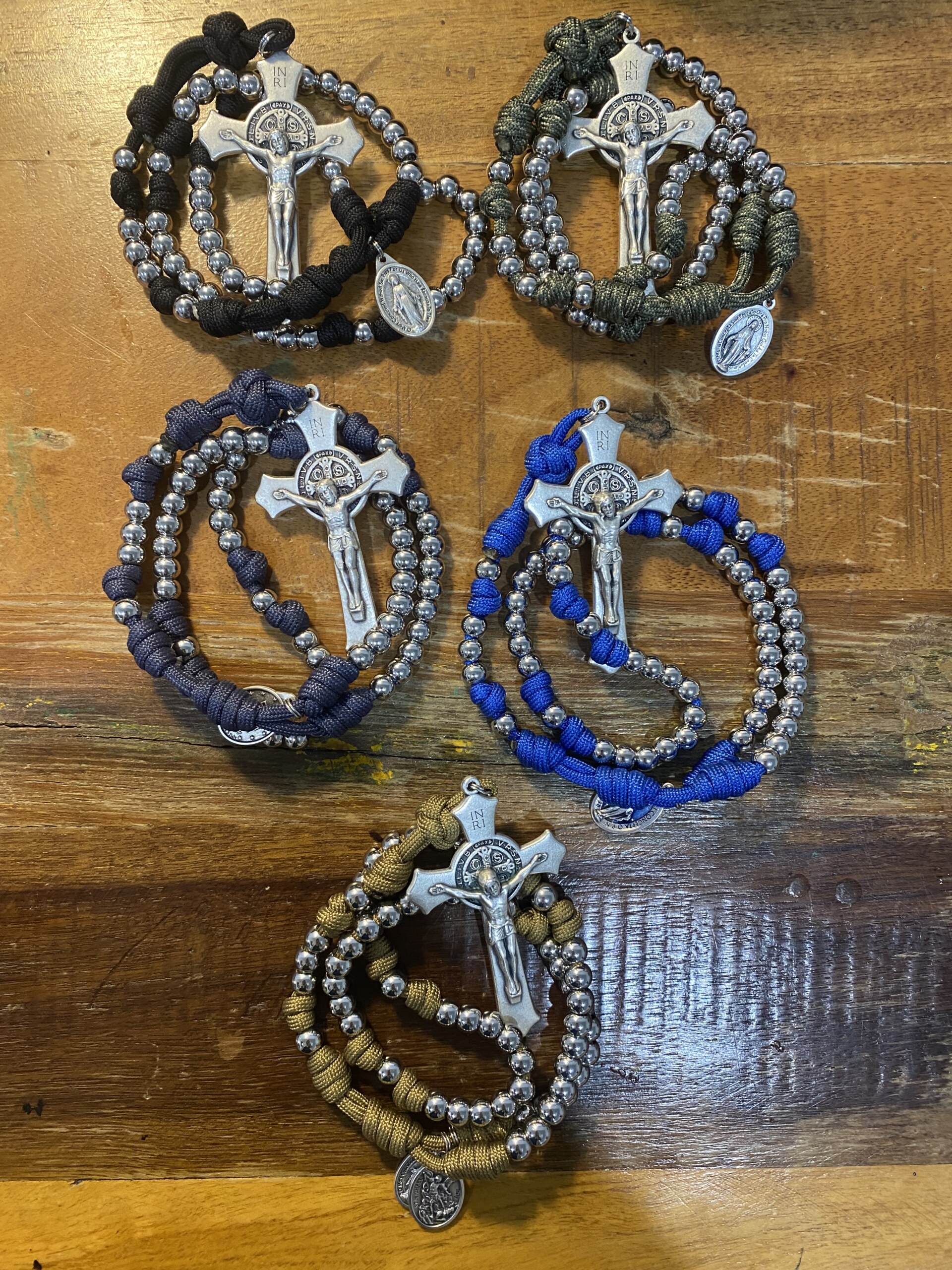 This is our durable 550 St. Benedict Paracord Rosary, a rosary that will not get tangled and that is built to last the test of time.