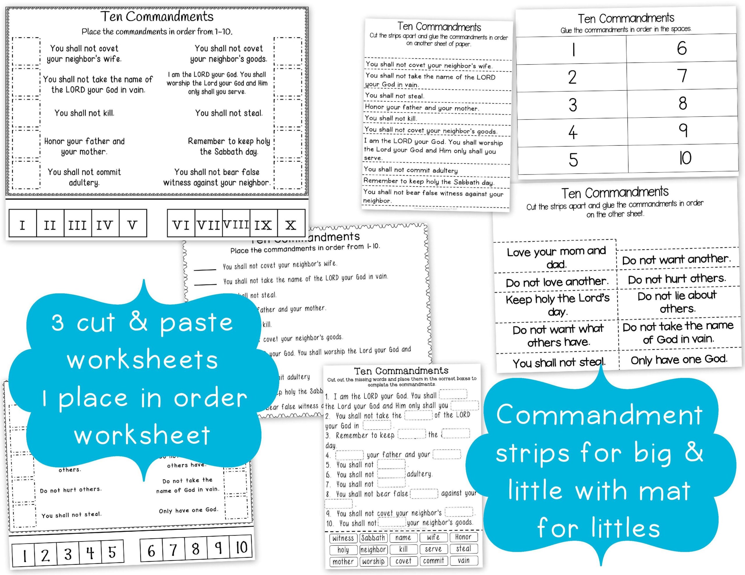 - 1 page to cut out words and glue them in the correct location to complete the Commandments