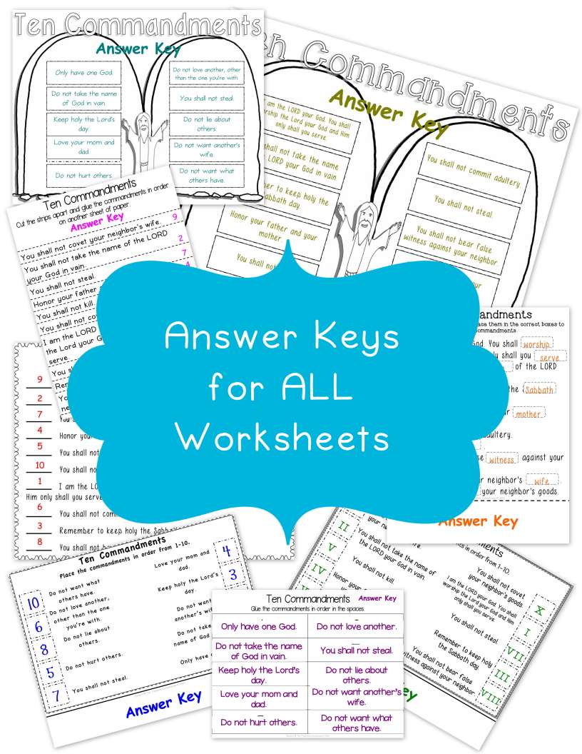- 2 cut & paste worksheets to place the number of the Commandment next to the Commandment (1 with roman numerals, 1 with plain numerals)