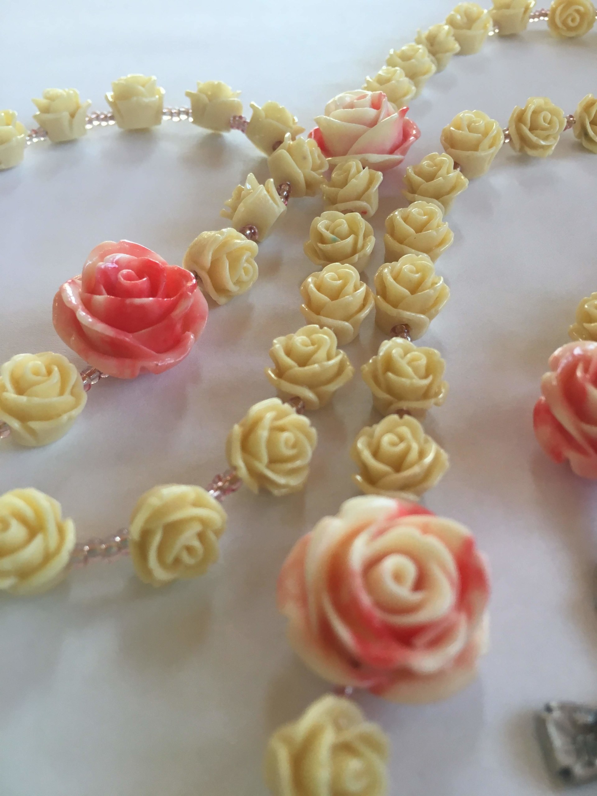 Most designs are one-of-a-kind. If you see a listing marked Made to Order, it means that the item has been sold but is likely able to be recreated. Please send me a quick message before ordering. Usually I can find the same supplies, but I cannot guarantee that they will be available again. If this is the case, I will gladly design something similarly beautiful with you. I will be messaging you and will be transparent about any substitutions and any price differences if applicable. Price displayed on each rosary is for the exact one shown.