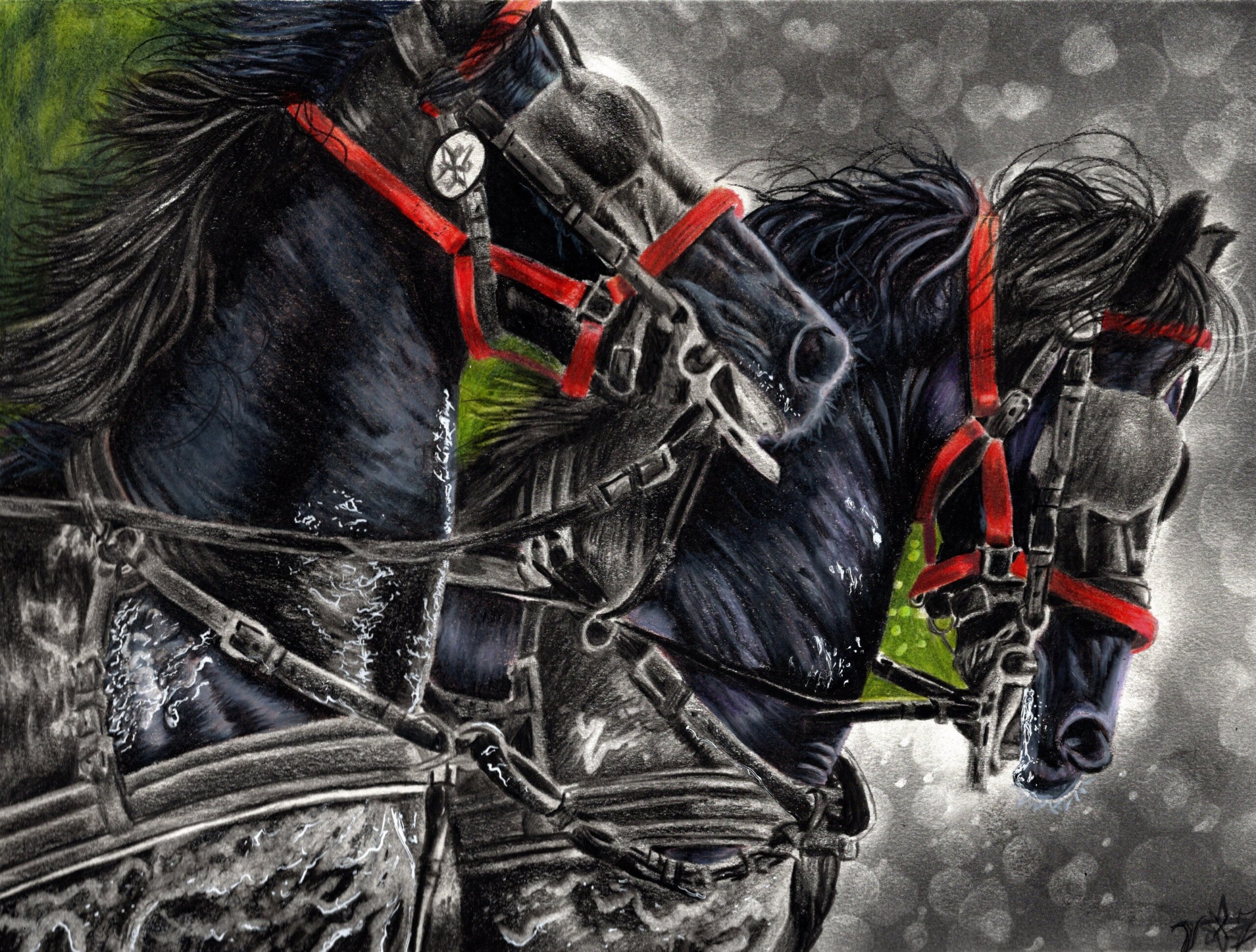These beautiful race horses are drawn in graphite and colored pencil, hence the name hybrid. I love testing out different ways to mix color and graphite to see how it turns out. They come shipped in a tube on archival matt paper with a one inch border for framing. The dimensions are 12.00 x 9.13 inches for the image and 14.00 x 11.13 for the entire print size.