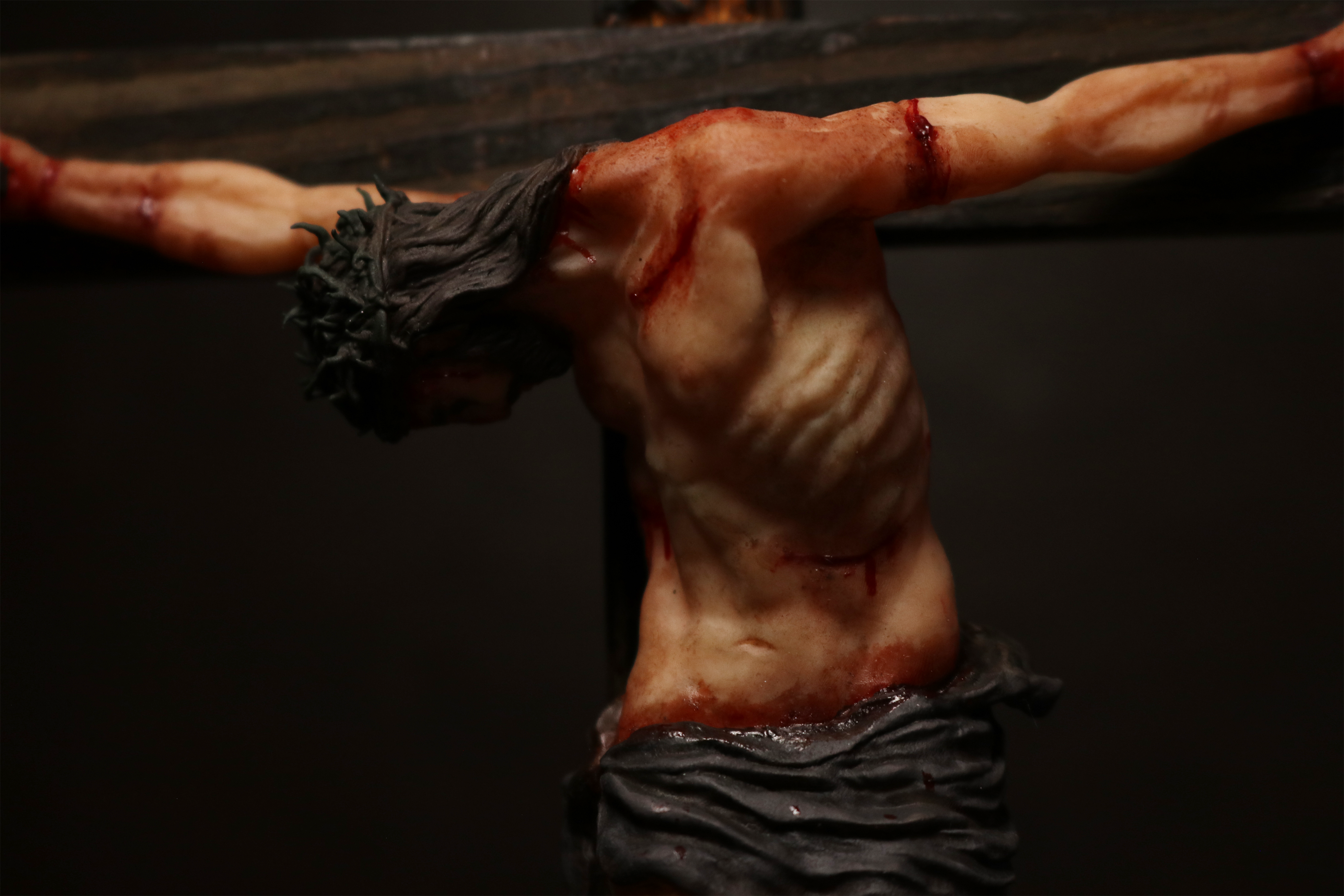 Originally sculpted by hand in clay, the corpus of Christ was 3D scanned and resin printed to faithfully preserve the handmade detail and expressiveness of the original work. Each figure is then diligently and prayerfully hand-painted, capturing the solemn moment when Christ, having submitted His spirit to the Father, bows His head in death.