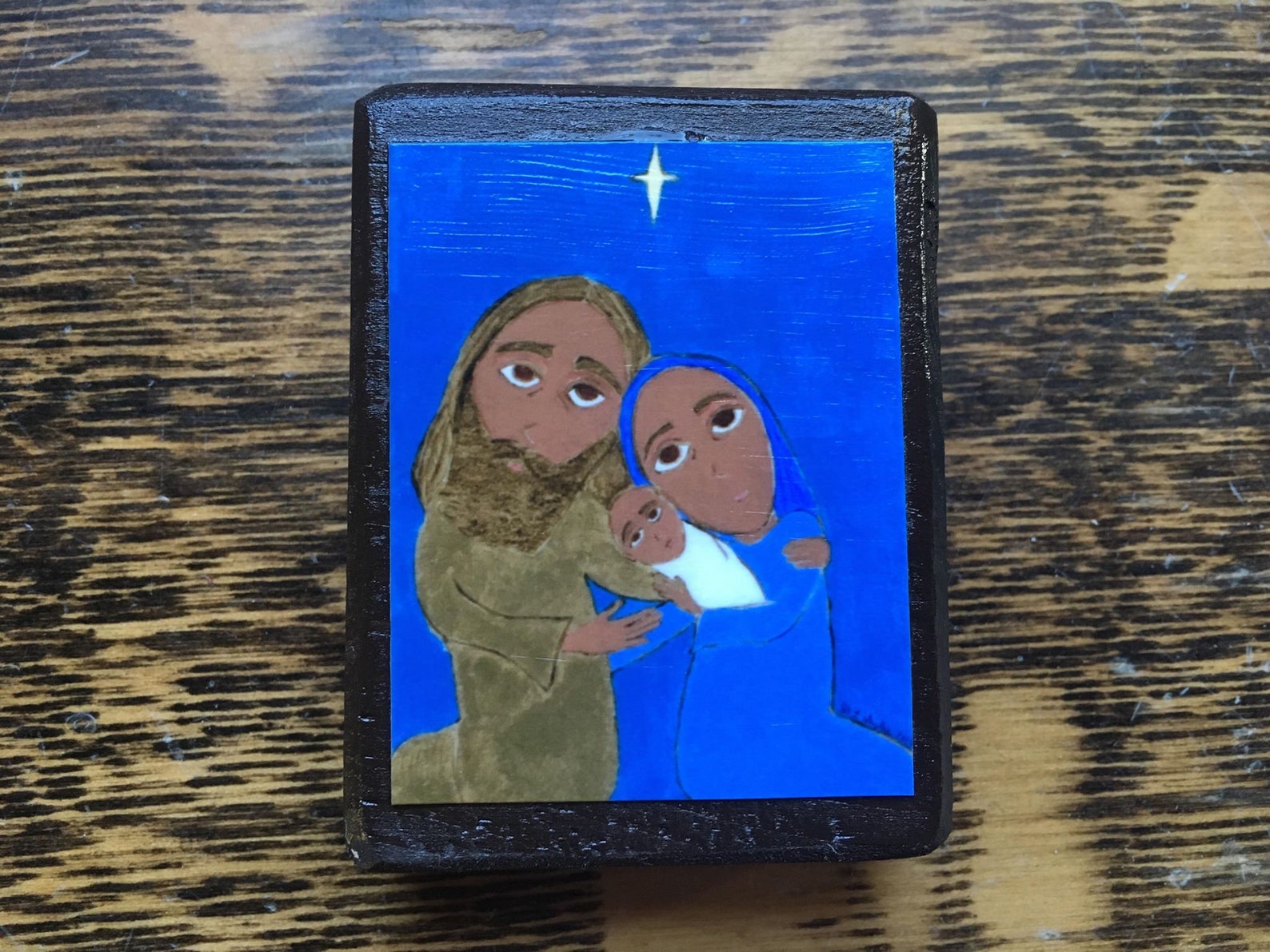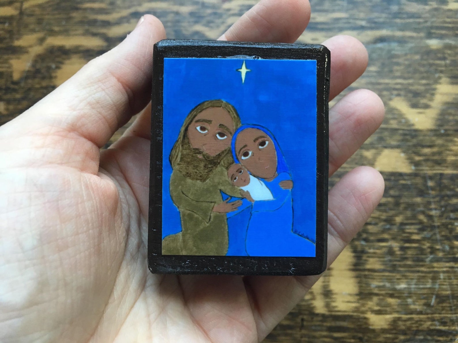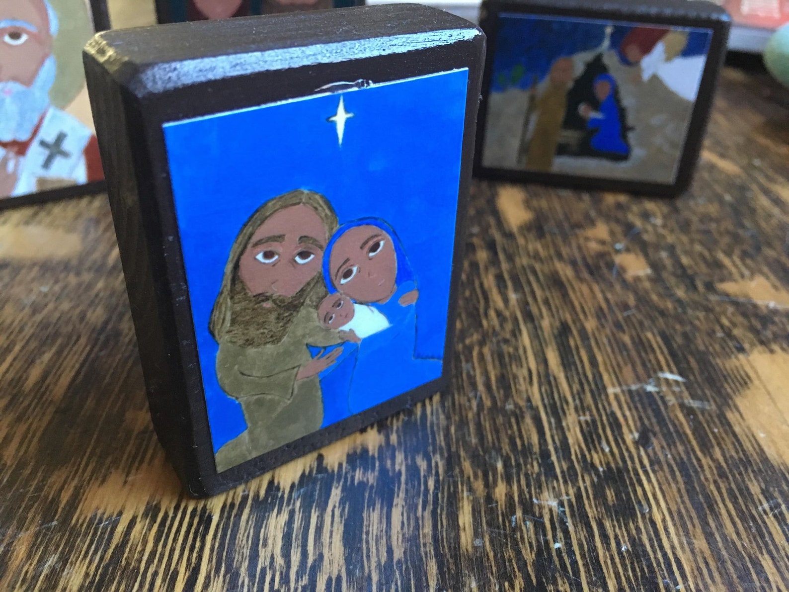 Be the first to review “Tiny 2.5 X 2 -ish inch The Nativity Byzantine Folk style icon on wood by DL Sayles” Cancel reply