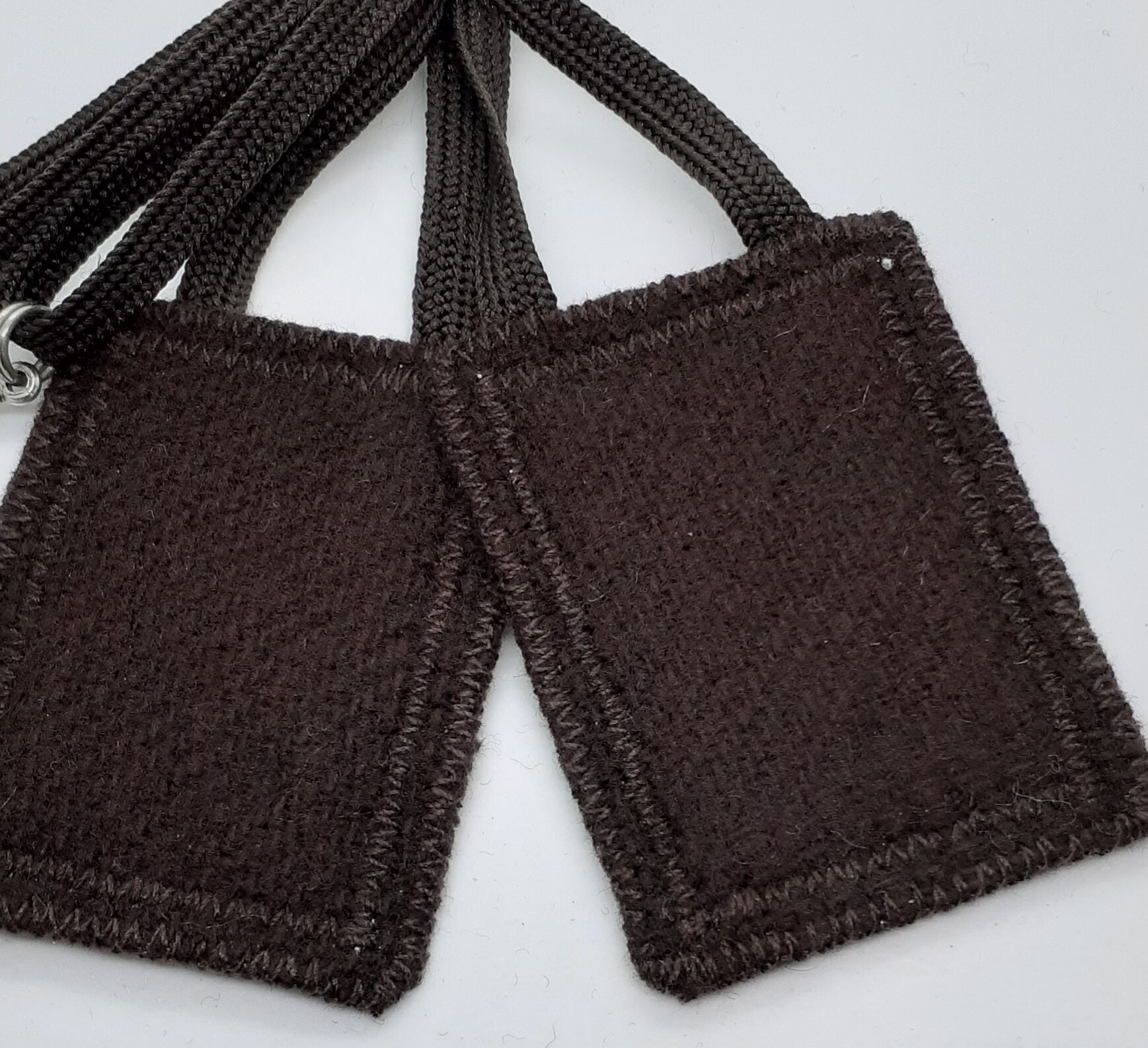 Our Lady of MT. Carmel 100% Brown Wool Scapular made with a sturdy double layer of brown wool. All edges are securely sewn to prevent fraying.