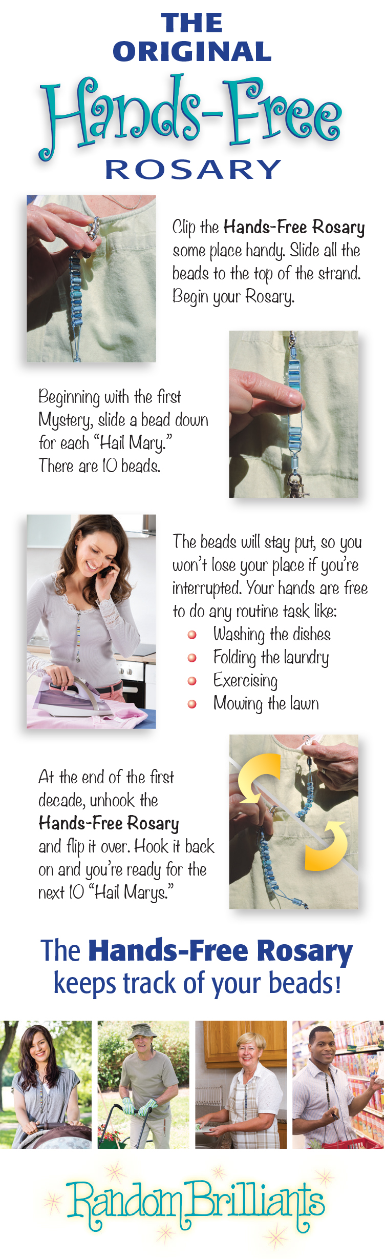 The Original Hands-Free Rosary! Now you can pray the Rosary while you perform routine tasks — like mowing the lawn, folding the laundry, washing the dishes — and you’re hands are free, no need to hold or count your beads.