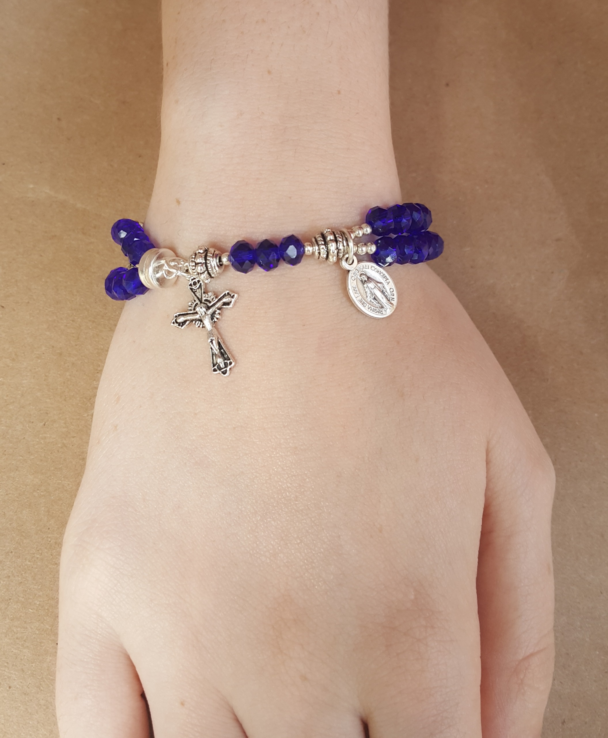 The Wrist Rosary is the original design of MG Rosary, a tiny, complete 5 decade rosary that has a magnetic clasp in the center of the third decade so it can be worn as a bracelet and easy to remove for prayer. The strong magnet will not come open on its own, the tension must be broken with a fingernail or it must be slid apart.